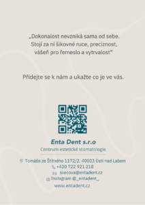 Specializujeme se na precizní práci a používáme pouze materiály nejvyšší kvality. Již více než 15 let poskytujeme komplexní a finančně dostupná řešení pro Váš krásný úsměv. Naše služby jsou navrženy tak, aby splňovaly individuální potřeby každého pacienta.